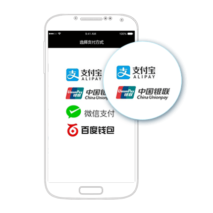 瑾白聚合支付平台,为iOS/Android原生/H5 App提供支付解决方案:支持微信支付、支付宝支付、银联手机支付、百度钱包等。
